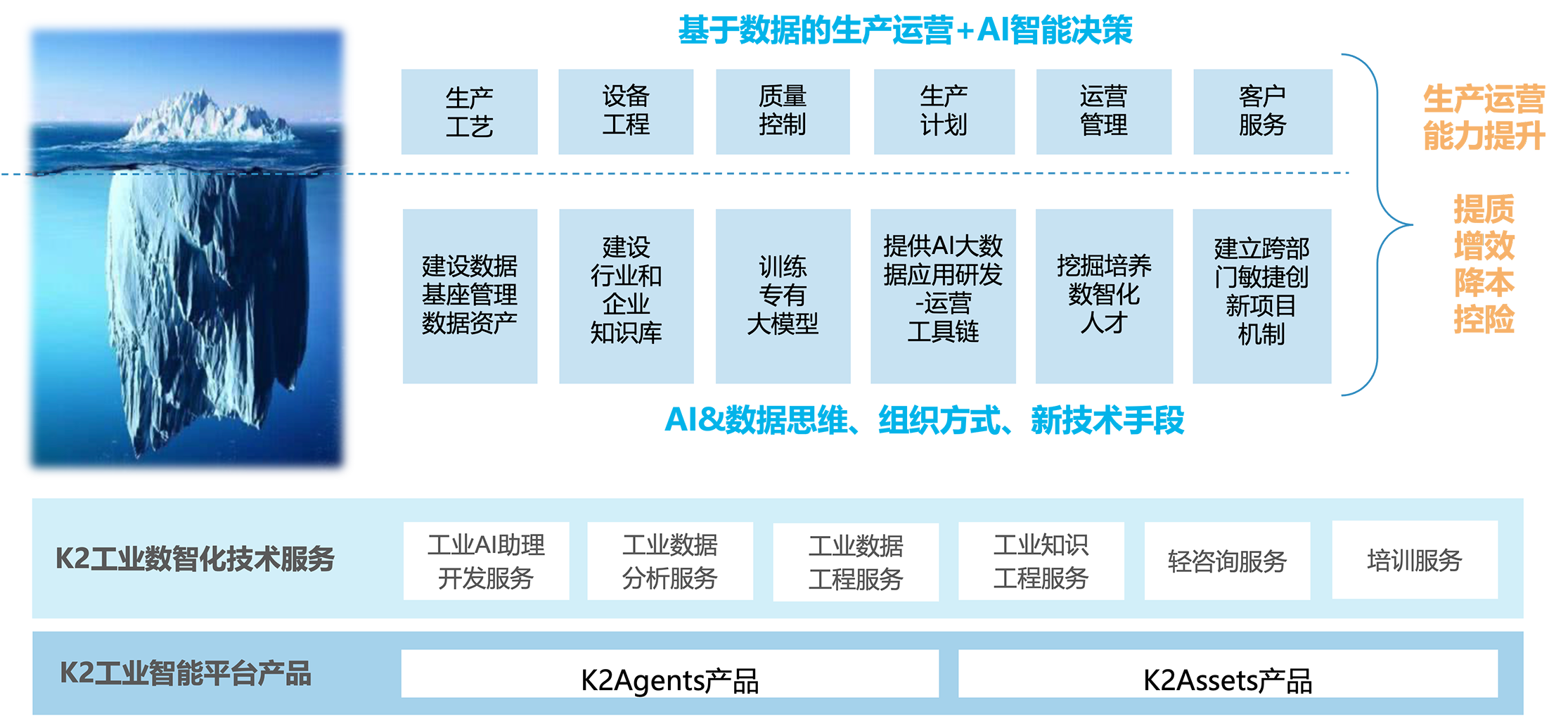 帮助工业企业深化大数据分析与创新能力的企业级软件平台,秉承K2敏捷分析方法论,支持工业工程师以业务视角的数据视图,自主进行数据探查和分析建模,低代码开发并运行可持续迭代的数智化创新应用,加速数据驱动的业务创新。