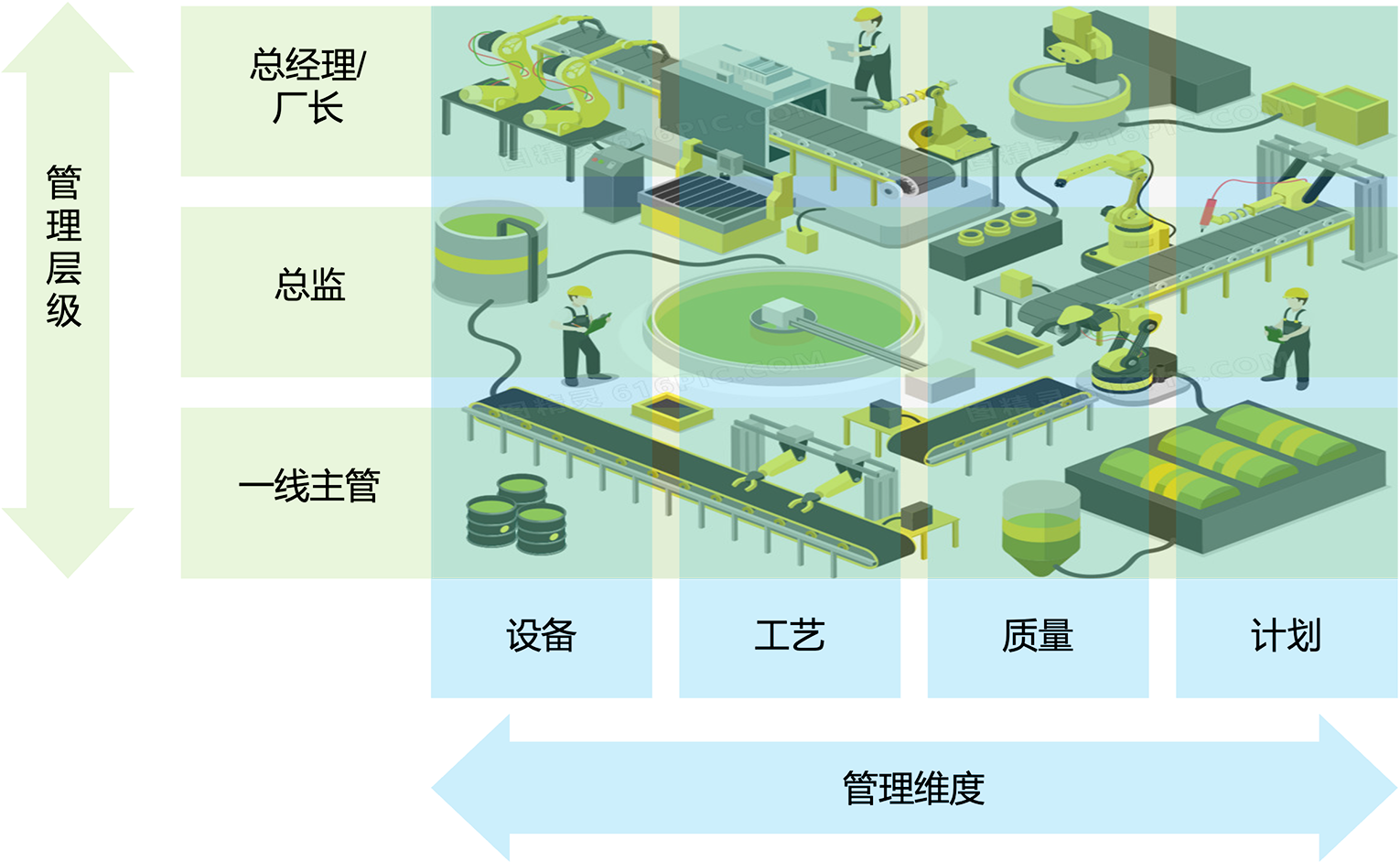 • 针对设备、工艺、质量、计划等不同管理维度