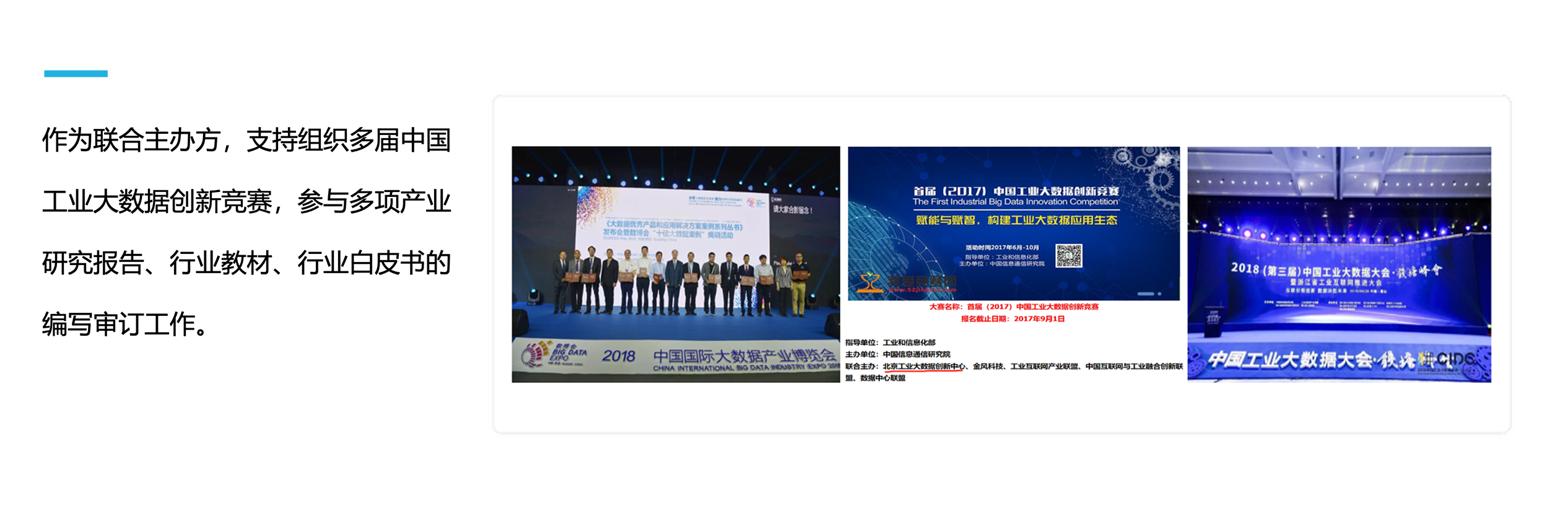 面向制造业创新发展的重大需求,整合产学研协同创新资源,致力于中国自主研发工业数据智能平台的核心技术突破及行业应用推广,通过技术创新降低工业企业应用大数据的成本和门槛,推进大数据在各行业应用,加速工业产业智慧升级,提升质量、效益和全球竞争力。