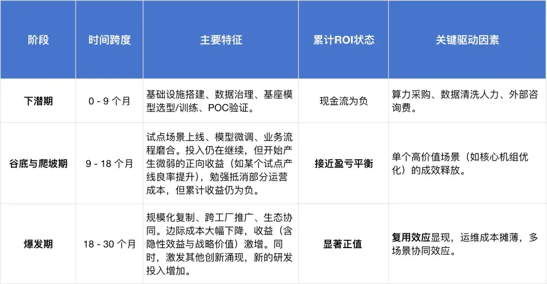 快赢场景:若仅聚焦于特定高价值痛点(如视觉质检替换人工),部分项目可在12个月内实现单点回本,但这未计算基座模型的摊销成本。
